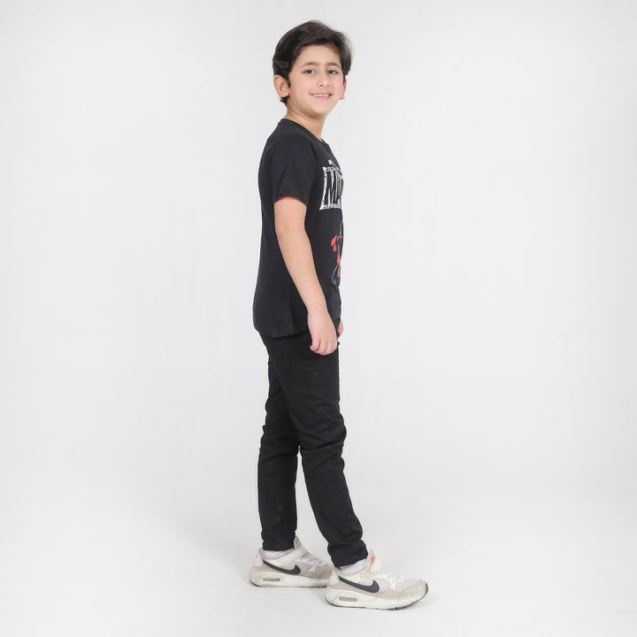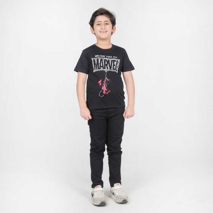 The Black Marvel T-Shirt in jersey fabric is a sleek and stylish choice for fans of the Marvel universe. Crafted from soft and comfortable jersey material, it ensures all-day comfort for casual wear. Featuring iconic Marvel logos or characters, this T-shirt pays homage to the beloved superhero franchise. Whether you're a die-hard fan or simply appreciate the aesthetic, this shirt allows you to showcase your love for all things Marvel. Pair it with jeans or shorts for a laid-back yet trendy look that's perfect for any occasion.