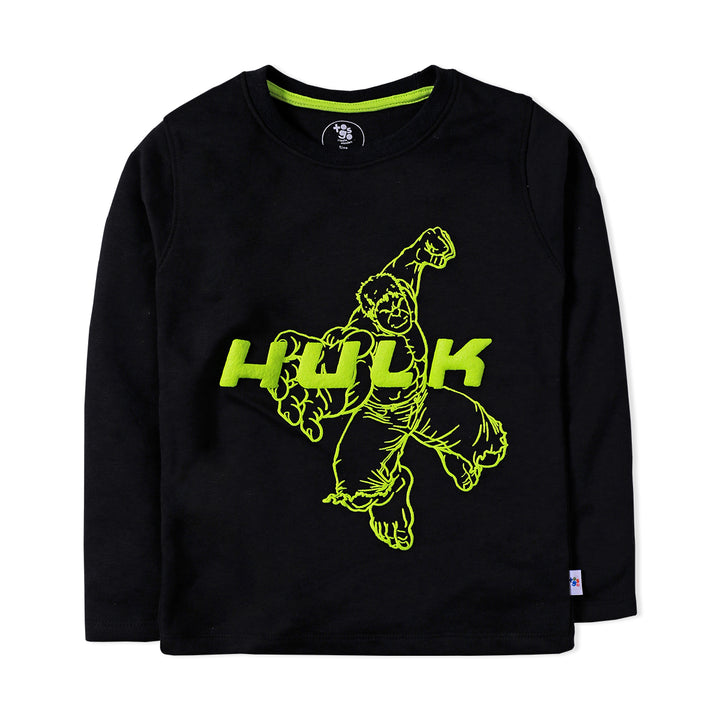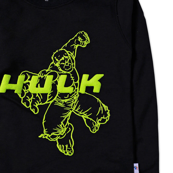 Unleash the inner hero within you with our Black Hulk Terry Sweatshirt. Crafted from plush terry fabric in a sleek black color, this sweatshirt features a bold and attention-grabbing Hulk Puff Print on the front. It's time to level up your style game with the power of the Hulk!