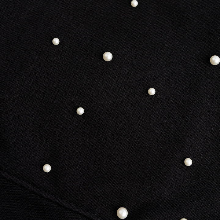 - Design: Classic black sweatshirt with pearl detailing for a chic twist.