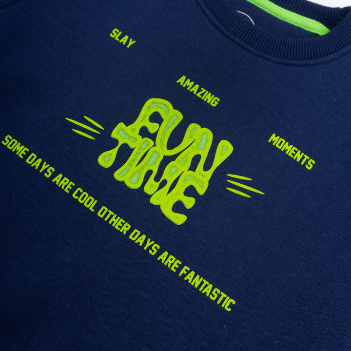 Keep your little ones warm and stylish with our Fun Time Graphic Sweatshirt for kids! Made from soft and breathable fleece fabric, this sweatshirt is perfect for all-day comfort during chilly seasons.