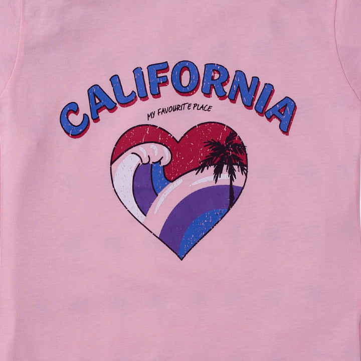The Girls' California Pink T-Shirt in jersey fabric is a fun and vibrant addition to any young girl's wardrobe. Made from soft and comfortable jersey material, it ensures all-day wearability. The playful pink color adds a cheerful touch, while the "California" print brings a sense of sunshine and adventure. Whether she's running around the playground or hanging out with friends, this T-shirt offers both style and comfort. Pair it with jeans or shorts for a casual and cool look that captures the laid-back spirit of the Golden State.
