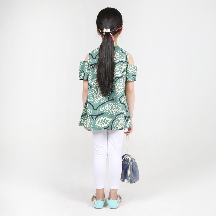 The Green Floral Off Shoulder Top in cotton is a charming and feminine choice for warm-weather days. Made from lightweight and breathable cotton fabric, it ensures comfort and ease of wear. The refreshing green color adds a natural and vibrant touch to your look, while the floral pattern brings a hint of romance and elegance. The off-shoulder design adds a flirty and playful vibe, perfect for showcasing your shoulders and soaking up the sun. Whether paired with jeans for a casual outing or a skirt for a more dressed-up occasion, this top exudes effortless summer style.