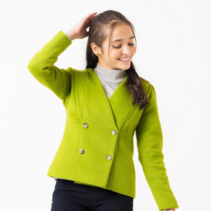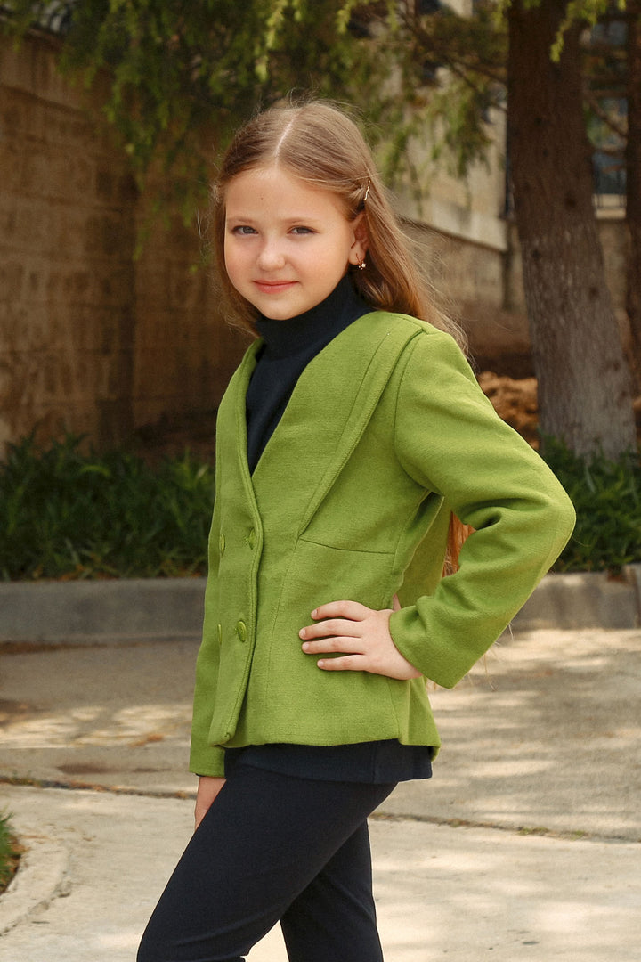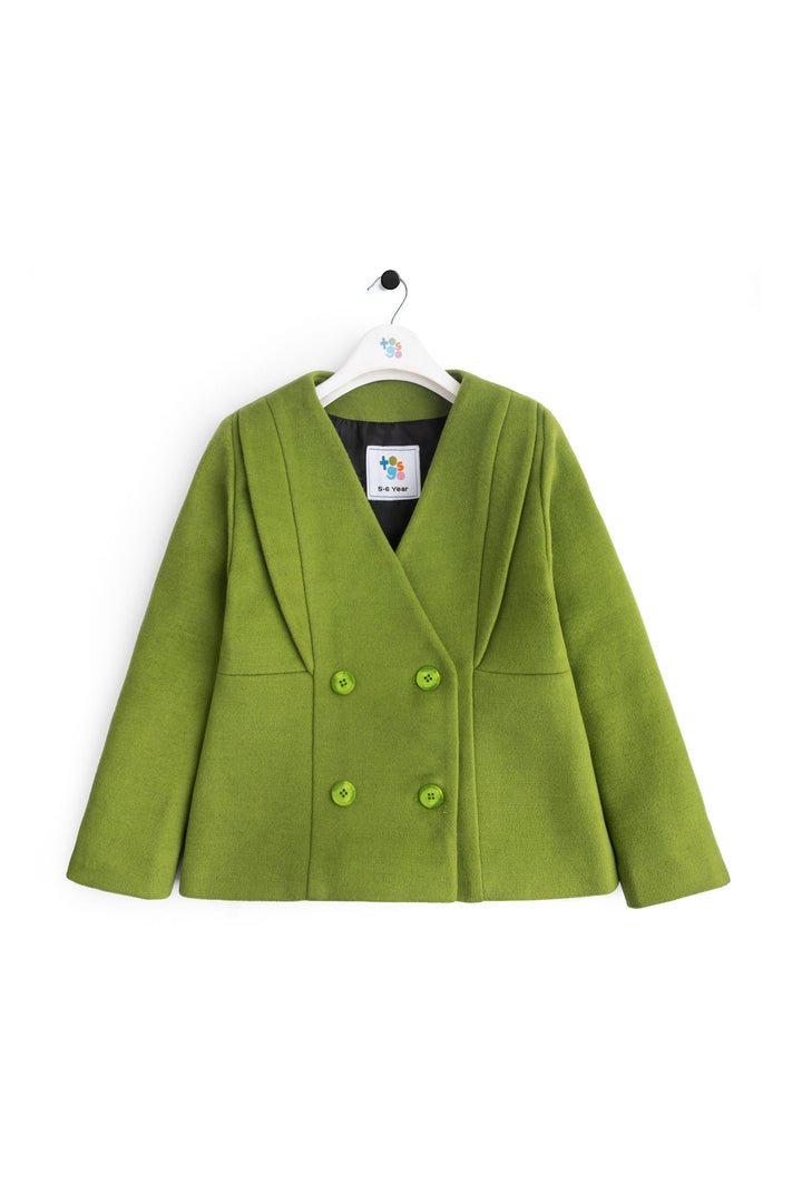Elevate your little one's wardrobe with our elegant Green Wool Double-Breasted Coat. Designed for both comfort and sophistication, this coat is perfect for chilly days while making a bold style statement.