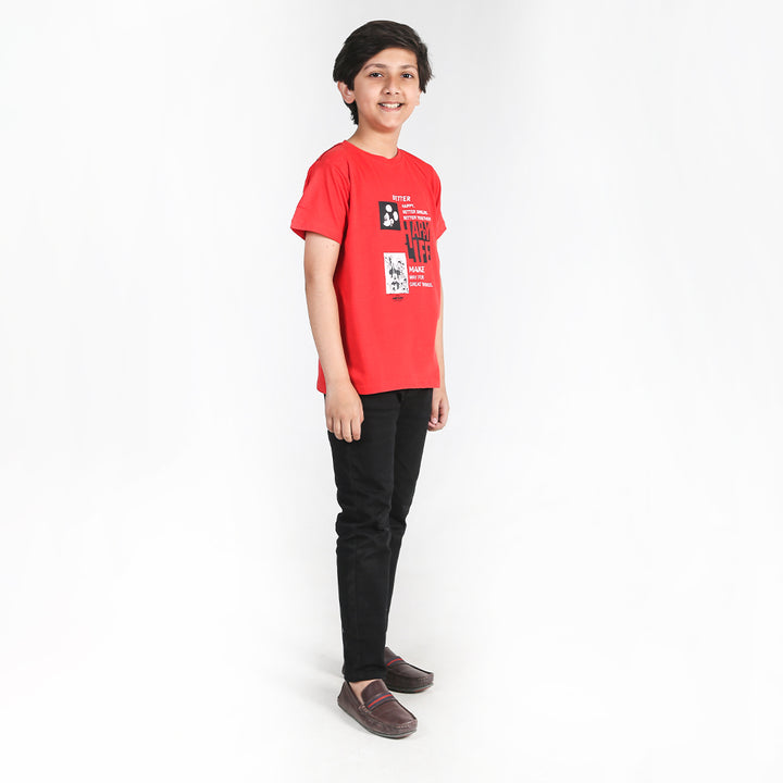 In short, a "Happy Life Red T-Shirt jersey" is likely a red T-shirt made from jersey fabric. The term "Happy Life" suggests that the shirt may feature a positive or uplifting message or graphic. T-shirts made from jersey fabric are typically soft, comfortable, and breathable, making them suitable for casual wear. Overall, this garment would likely offer both comfort and a positive vibe, making it a great choice for everyday wear.