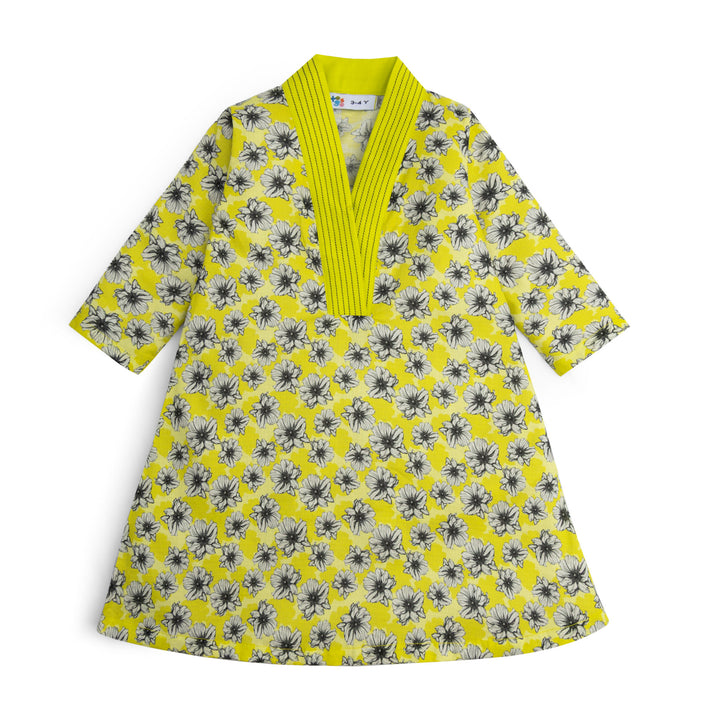 Crafted from breathable, high-quality cotton, this kurti features a refreshing lime yellow hue adorned with delicate floral prints, perfect for daytime outings or casual gatherings. The soft fabric ensures all-day comfort, while the vibrant color and elegant design add a touch of grace to your everyday look.