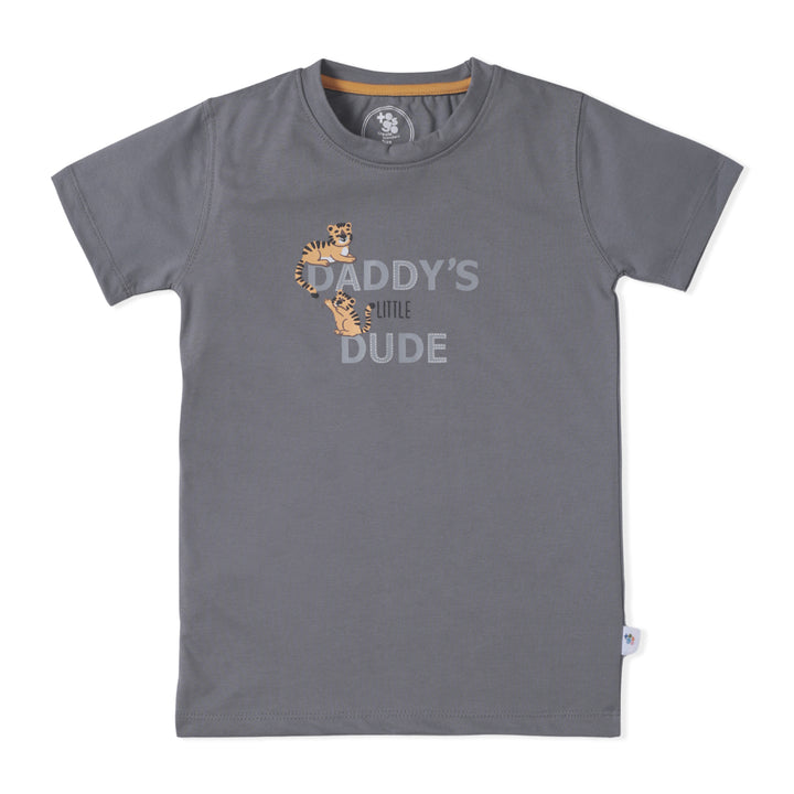 The Little Dude Gray T-Shirt in jersey fabric is a cute and stylish choice for the little guy in your life. Made from soft and comfortable jersey material, it ensures all-day comfort for playtime adventures. The versatile gray color provides a neutral backdrop, while the "Little Dude" print adds a playful and charming touch. Whether he's heading to the park or hanging out at home, this T-shirt offers both style and comfort. Pair it with jeans or shorts for a casual and cool look that's perfect for any occasion.