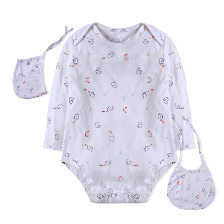 Embrace the joy of parenthood with the Little Elephant White Romper, Bib, and Cap set. It's not just clothing; it's a cherished memory in the making. Order yours today and let your little one's cuteness shine!