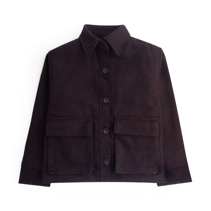Upgrade your wardrobe with the timeless charm of our Maroon Tweed Double-Pocket Jacket. Crafted for the modern individual with a taste for elegance, this jacket combines classic design with functional details.