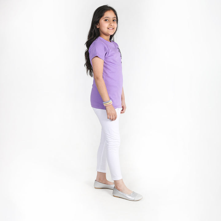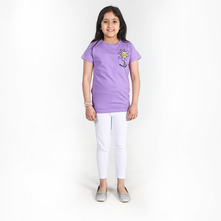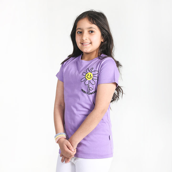 The "More Flowers Purple T-Shirt" in jersey is a charming and comfortable top adorned with floral designs, perfect for everyday wear.