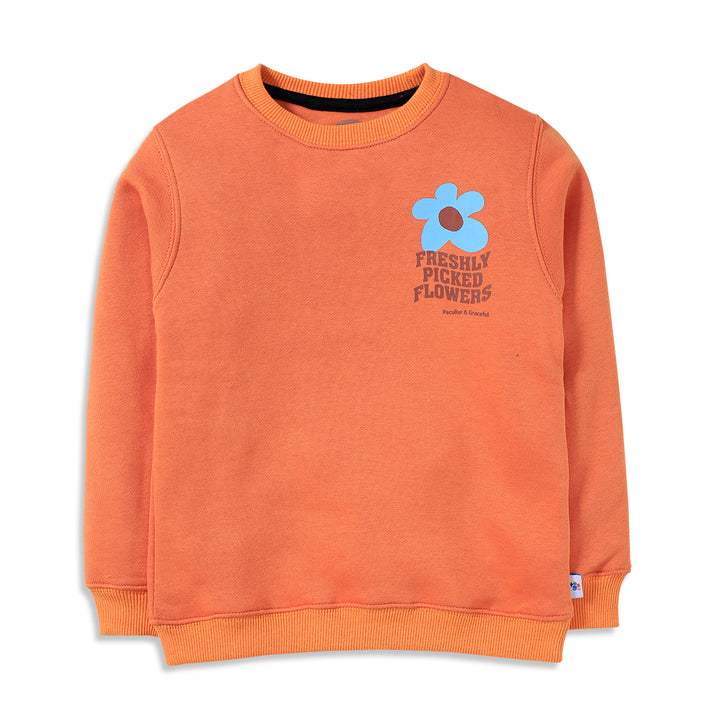 Upgrade your child's wardrobe with this Orange Floral Fleece Sweatshirt, blending comfort and style effortlessly. Order yours today and let your little one shine with floral charm.