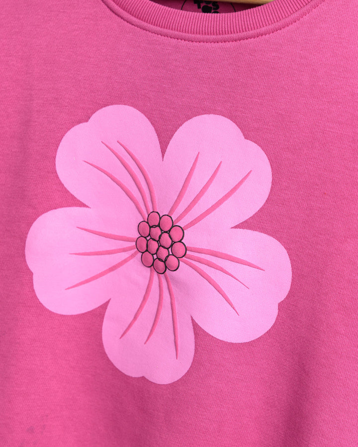 Pink Flower Graphic Fleece Sweatshirt