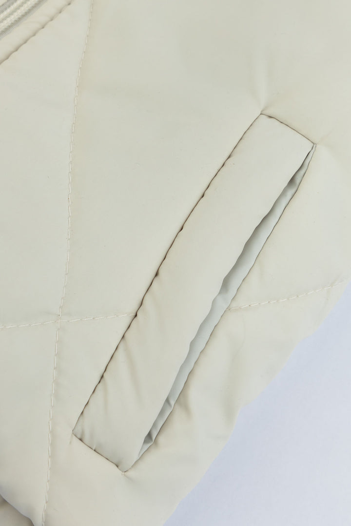 Stay warm and chic with our Rib Collar Sleeveless Puffer Jacket in a trendy ash white hue. Designed for comfort and style, this lightweight yet insulated jacket is perfect for layering during cooler seasons.