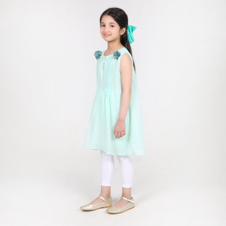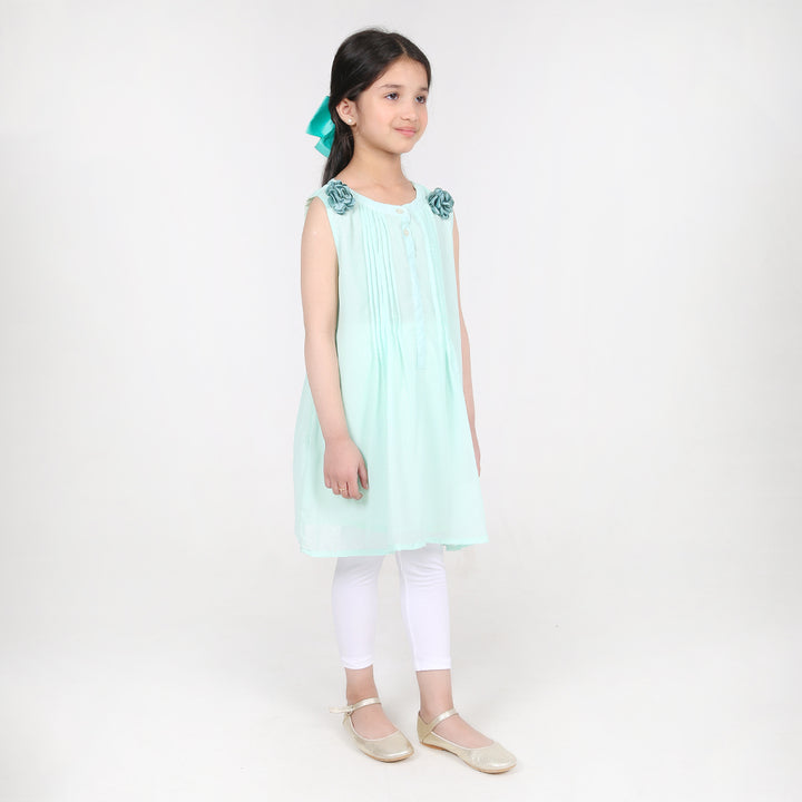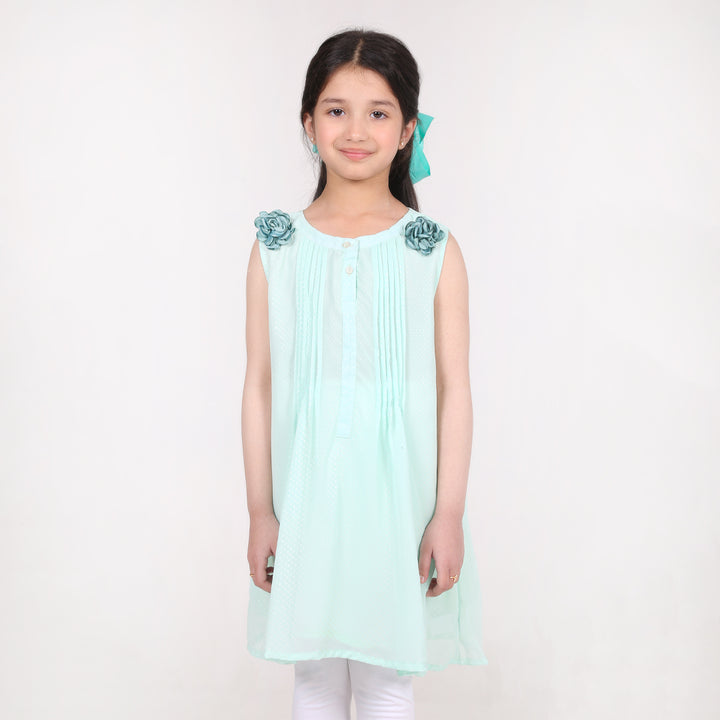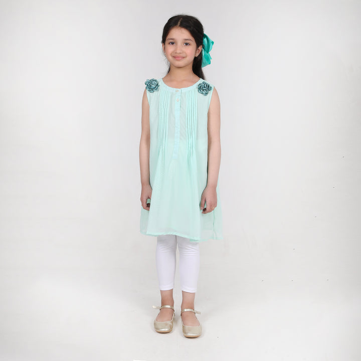 A "Sea Green Floral Top" in cotton would likely be a top made from cotton fabric, featuring a floral design, and in the color sea green. This garment would offer comfort and breathability due to the cotton material, and the floral pattern adds a touch of charm and femininity. Perfect for casual wear during warmer seasons, it provides both style and comfort for various occasions.