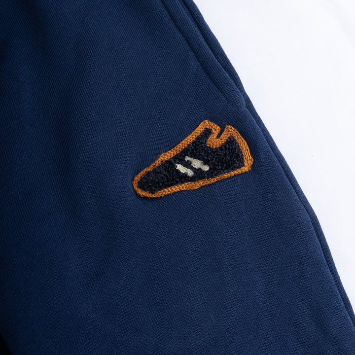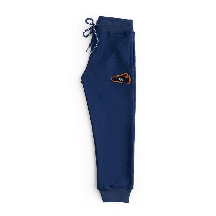 Keep your little ones stylish and comfortable with these Shoe Badge Navy Trousers made from soft and durable terry fabric. Perfect for active kids, these trousers are designed with a modern fit and feature: