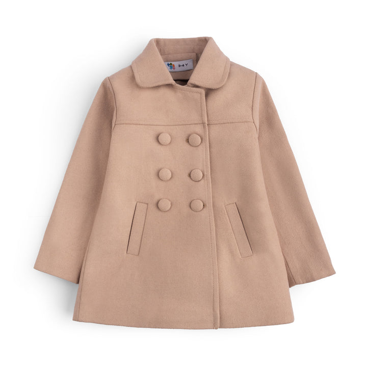 Add a touch of timeless elegance to your little one's wardrobe with this charming Wool Bib Collar Double Breasted Coat. Crafted from a soft, cozy wool blend, this coat is perfect for keeping your child warm during chilly days while offering a stylish, sophisticated look. The classic double-breasted design is complemented by a unique bib collar that adds a sweet, feminine flair.